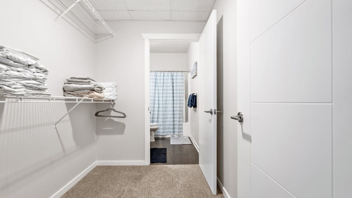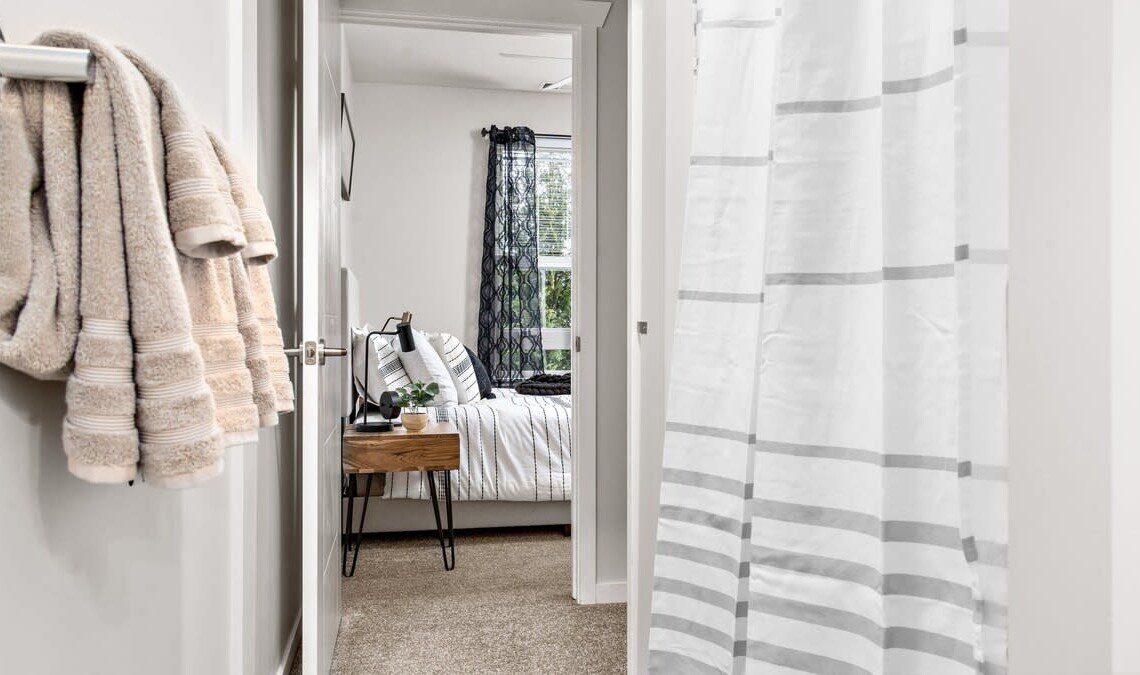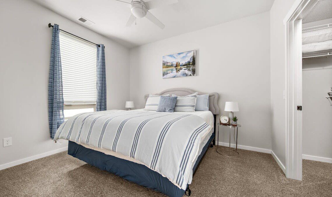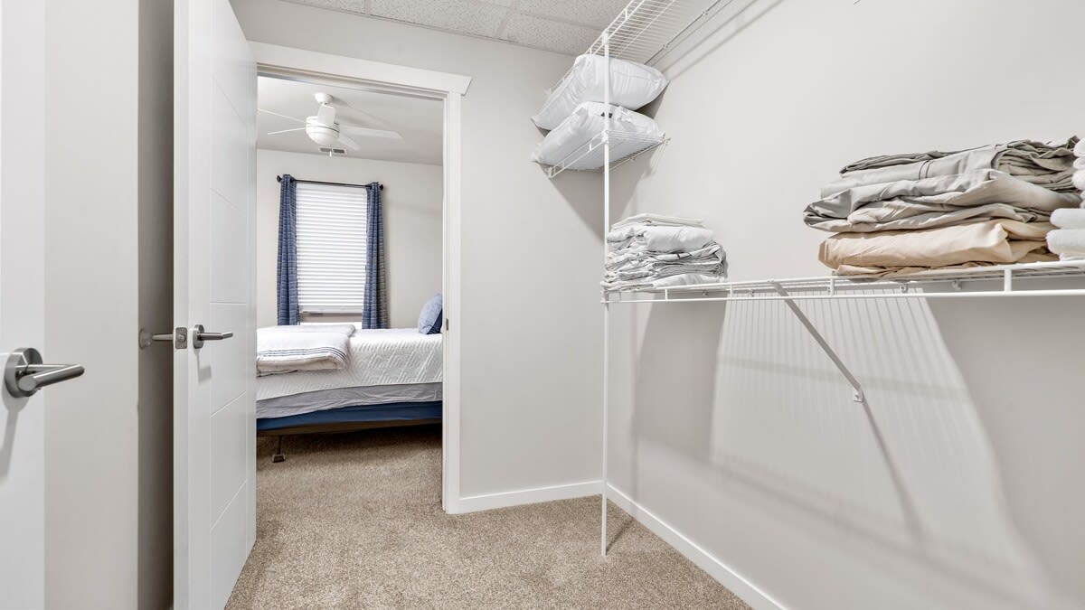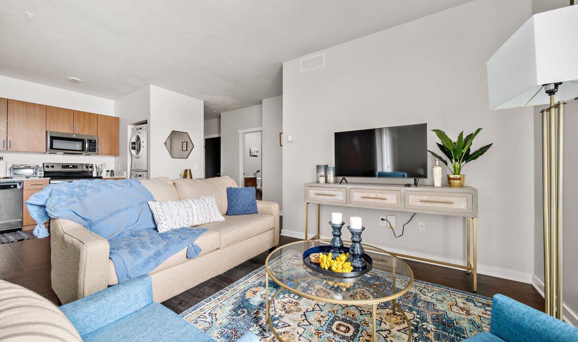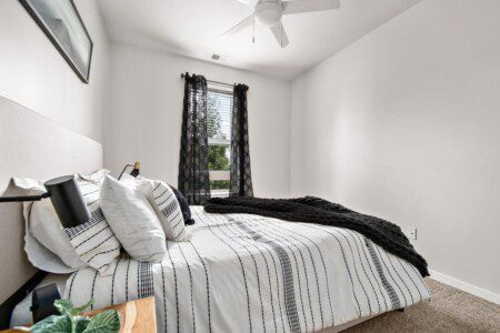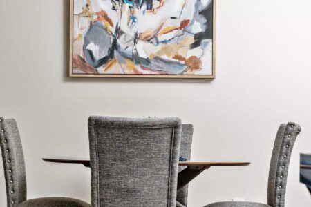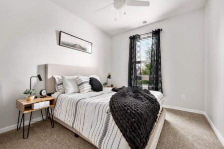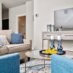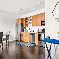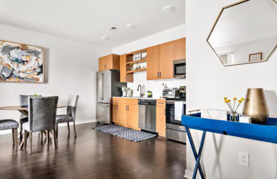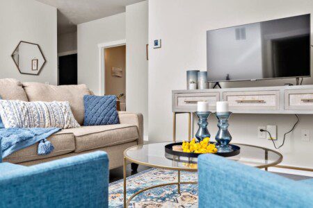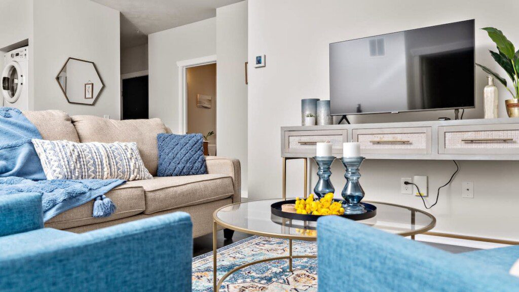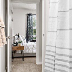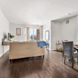 This first floor unit has everything that you need to enjoy a comfortable stay in Traverse City. Walk into our master bedroom that has a king size bed and a spacious walk-in closet to fit all of your belongings (or new purchases). The master bedroom also has an ensuite full bathroom, stocked with toiletry essentials. The guest bedroom has a queen bed, ensuite full bathroom, and a spacious walk-in closet. Don’t worry if you decide to extend your stay, each suite comes with their own washer and dryer along with basic laundry supplies.