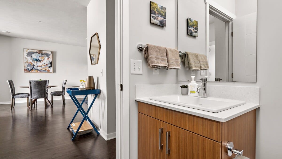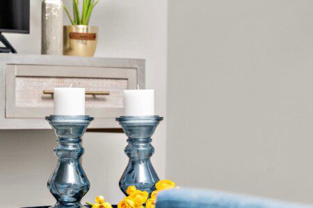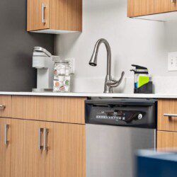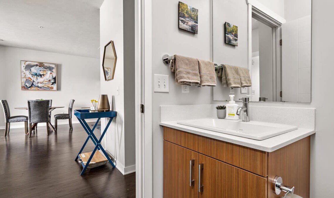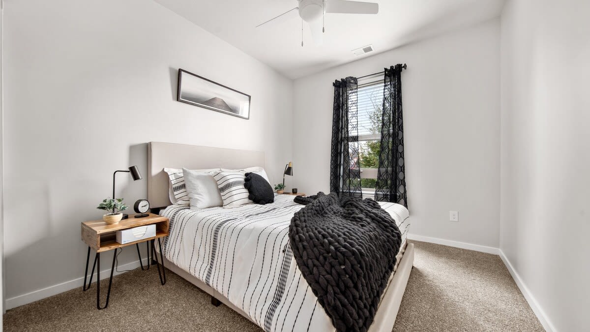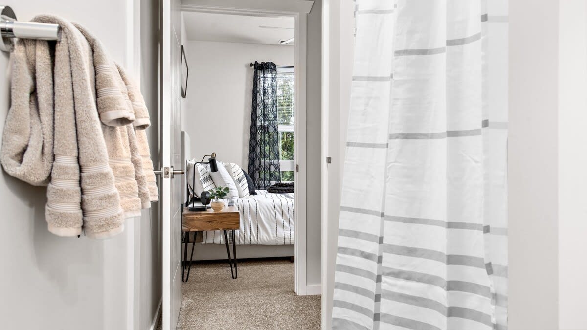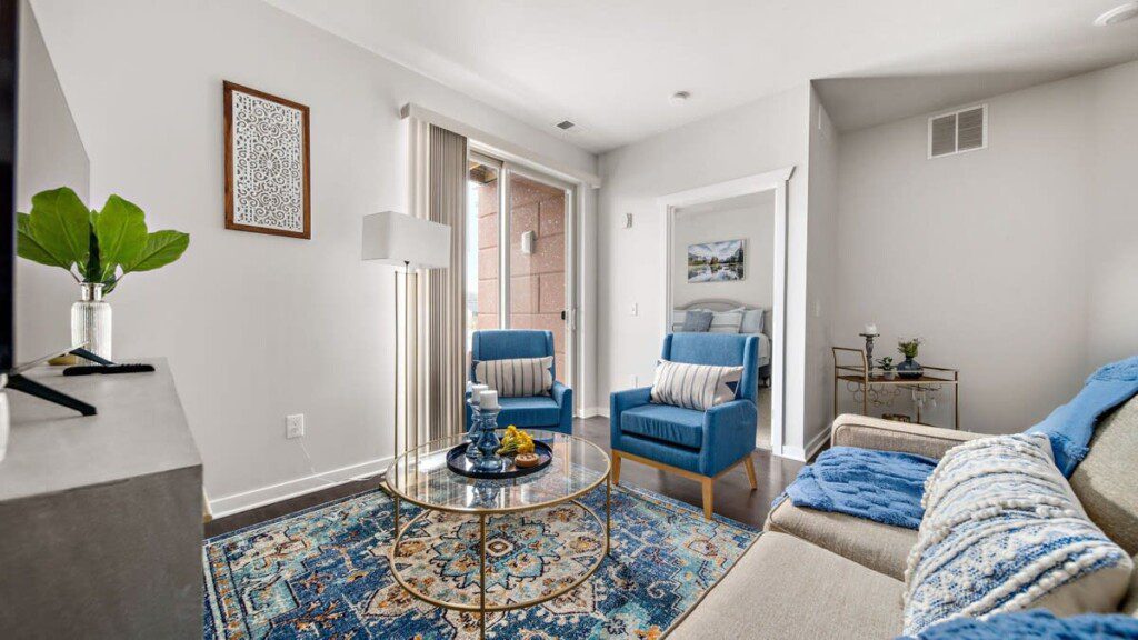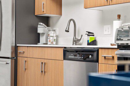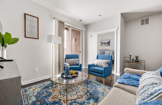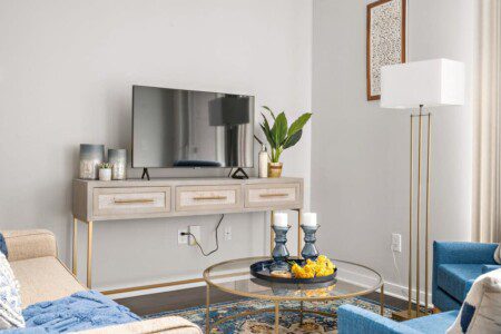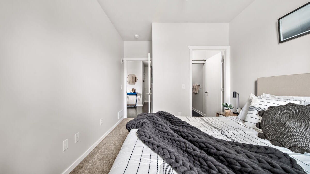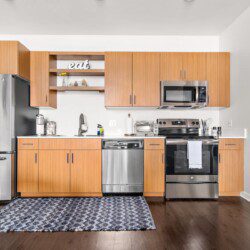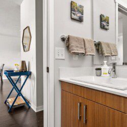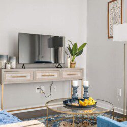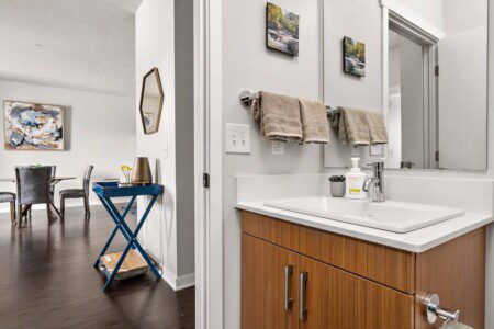 This first floor unit has everything that you need to enjoy a comfortable stay in Traverse City. Walk into our master bedroom that has a king size bed and a spacious walk-in closet to fit all of your belongings (or new purchases). The master bedroom also has an ensuite full bathroom, stocked with toiletry essentials. The guest bedroom has a queen bed, ensuite full bathroom, and a spacious walk-in closet. Don’t worry if you decide to extend your stay, each suite comes with their own washer and dryer along with basic laundry supplies.